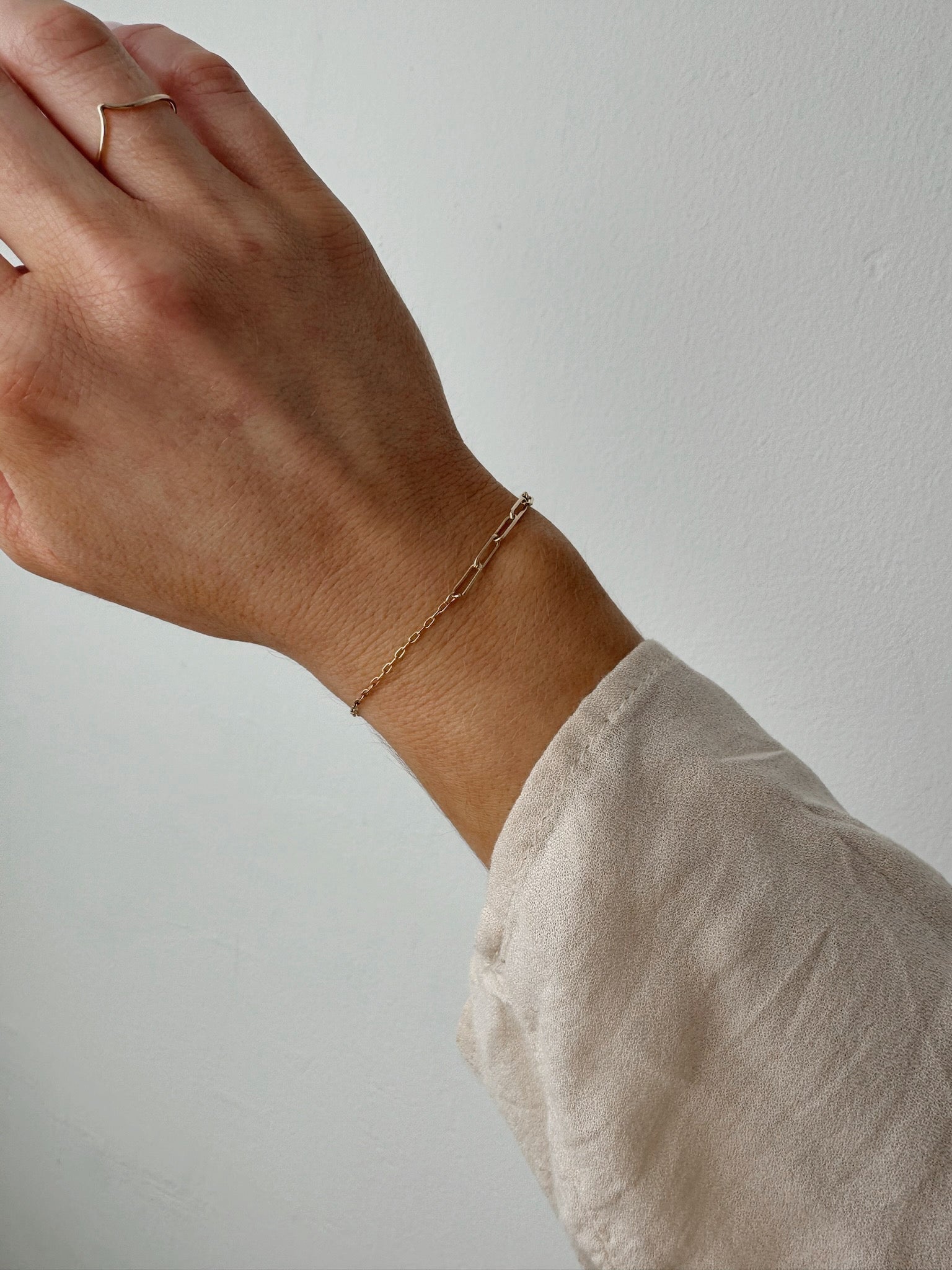 Meet The Surfside - where bold meets effortless. This design pairs the structured links of our Seaport L with the lightweight flow of the Newport chain for a look that's both modern and timeless. Available as a bracelet, anklet, or necklace in 14k gold filled or sterling silver, she's the perfect balance of statement and simplicity.