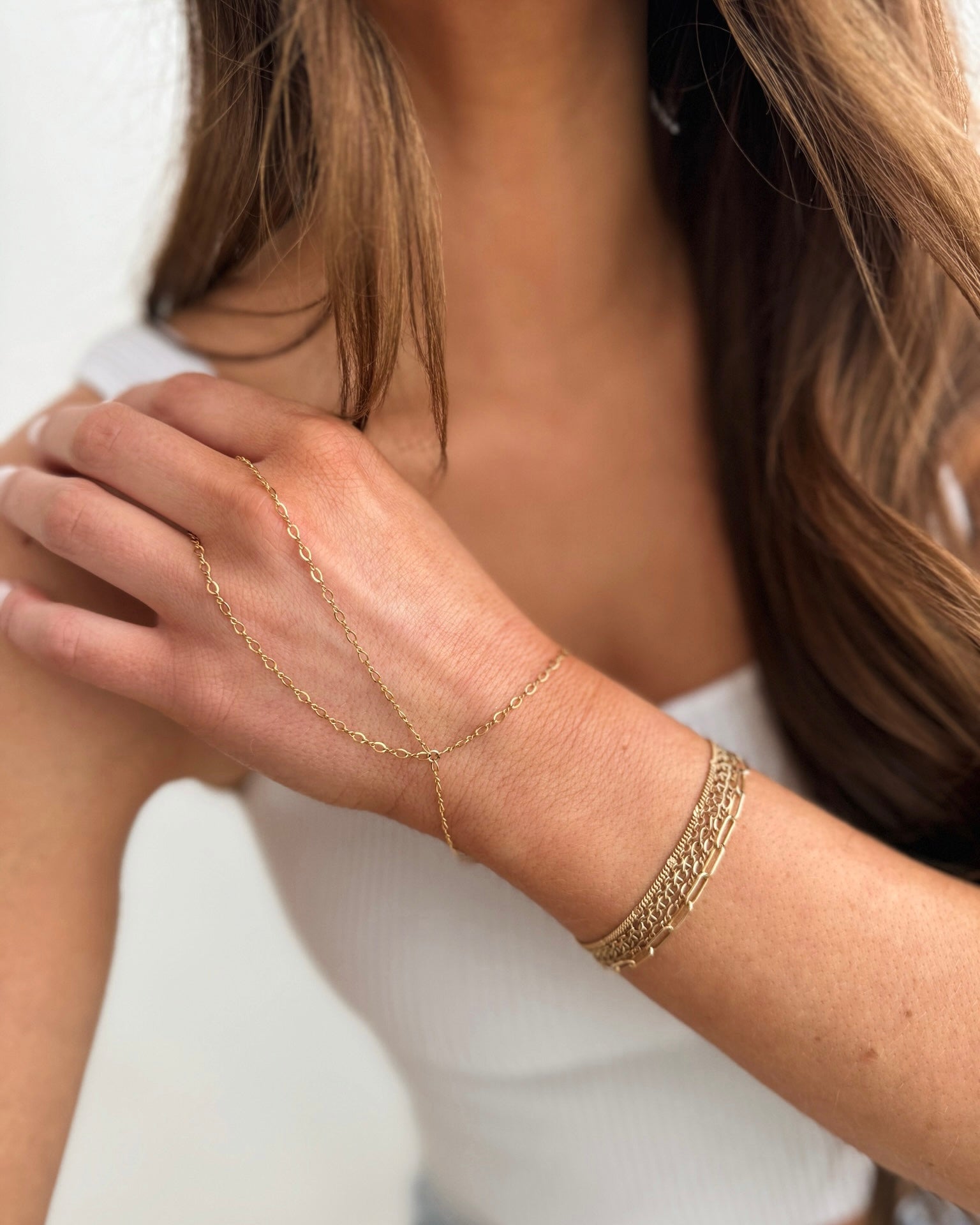 Say hello to The Ventura - our signature hand chain designed for effortless, everyday wear. Available in all our classic chain styles, she's the perfect way to add a little edge and elegance to your stack. Available in 14k gold filled and sterling silver, The Ventura is dainty yet durable. Wear her solo or layered up - either way, she's laid back luxury.